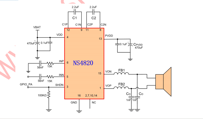 產(chǎn)品名稱:NS4820 2 級 G 類恒定輸出音頻功率放大器