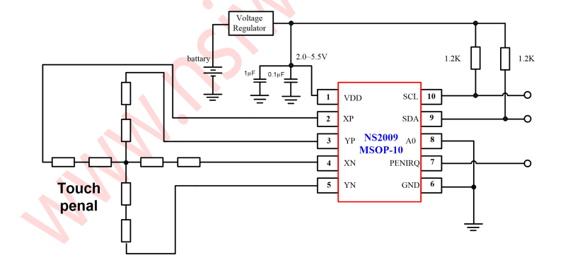 產(chǎn)品名稱:NS2009 I2C接口4線制電阻式觸摸屏控制器