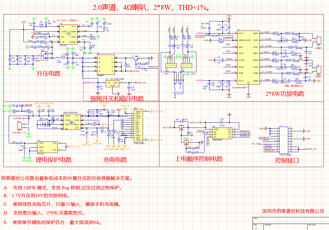 佰泰盛世推出高性價單節(jié)電池2X8W?4歐?1%音響解決方案選用;NS2159+AU3108+HT7180等芯片