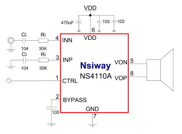 NS4110A主要應(yīng)用于拉桿音箱,家庭式影音系統(tǒng)等。極高的工作效率既能保證長時(shí)間的續(xù)航,又能保證較大功率的音頻輸出,是拉桿音箱產(chǎn)品的最佳選擇。芯片采用創(chuàng)新的電路設(shè)計(jì),保證了高保真度的音頻輸出,讓各頻段的音樂信號(hào)完美重現(xiàn)。芯片采用極小面積,帶散熱片的eSOP8封裝,具有極高的散熱效率,在高溫環(huán)境下表現(xiàn)出了良好的穩(wěn)定性。外部精簡的元件極大地降低了設(shè)計(jì)成本,適合多種移動(dòng)智能化的家庭式影音產(chǎn)品。