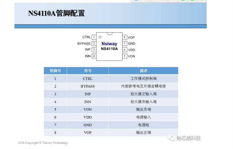 NS4110A ESOP-8小封裝20W單聲道D類功放IC產(chǎn)品簡介