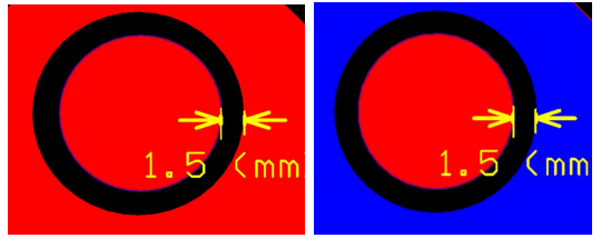 頂層觸摸 pad 這面可以鋪實(shí)地或網(wǎng)格地,鋪地間距需要離感應(yīng)焊盤 1.5mm 以上,相對(duì)于 pad 正對(duì)的底層這面,鋪地間距也需要保持離感應(yīng)焊盤 1.5mm 以上。