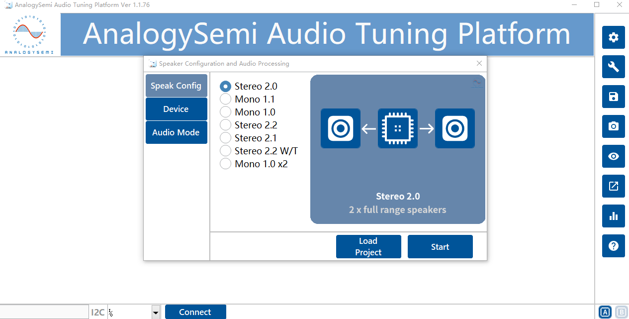 四、調(diào)試平臺,根據(jù)聲道選擇進(jìn)行調(diào)試。