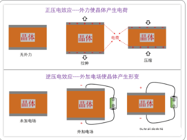 石英晶體具有壓電效應(yīng),若在晶體的兩個電極上加上一電場,晶片就會產(chǎn)生機械變形;反之,若在晶片的兩側(cè)施加機械壓力,則在晶片相應(yīng)的方向上將產(chǎn)生電場。