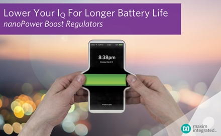 MAX17222nanoPower boost (升壓調(diào)節(jié)器),具有業(yè)內(nèi)最高效率和300nA最低靜態(tài)電流(IQ)