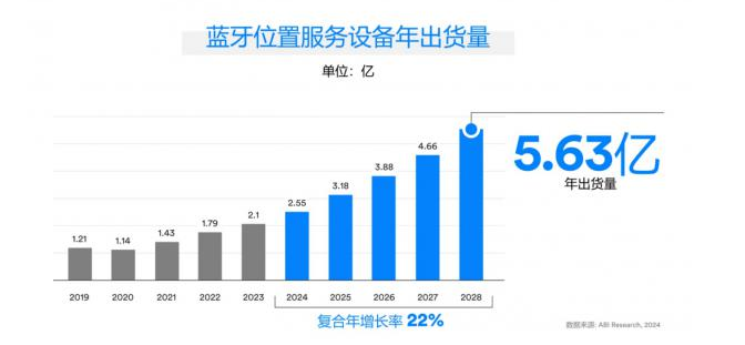 由于市場對高精度定位服務的需求日益增長,藍牙技術被廣泛用作一種設備定位技術。借助目前的藍牙設備,藍牙技術擁有其他定位無線電所不具備的靈活性和便利性。即將推出的“Channel Sounding”規(guī)范有望實現(xiàn)極其精準的測距,為當前的實時定位系統(tǒng)(RTLS)帶來更多優(yōu)勢,包括更高的精度和安全性等。預計未來五年藍牙位置服務設備的年均增長率為22%,到2028年出貨量將達到5.63億臺。