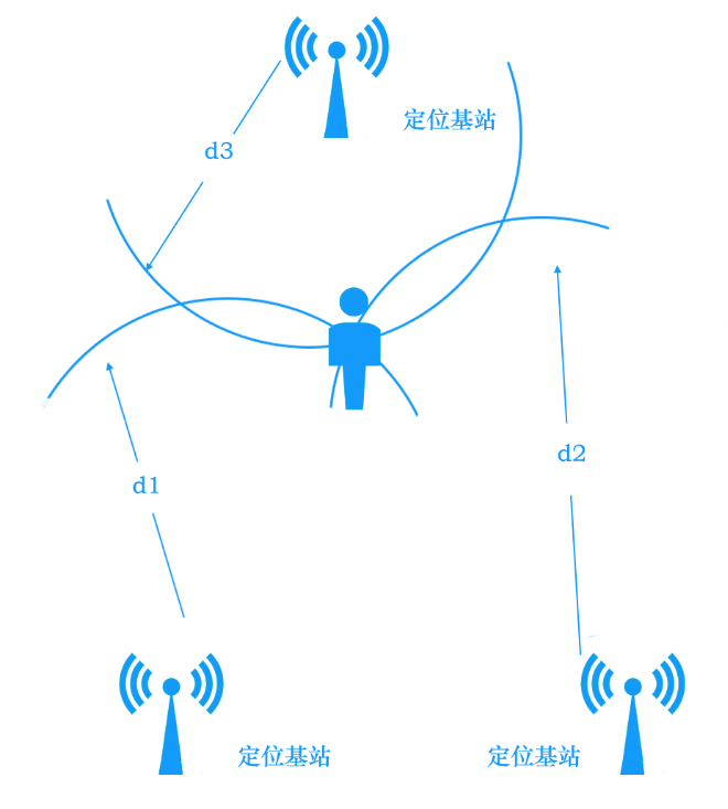 UWB定位基站的坐標已知,測得標簽到基站距離后,通過三點定位法畫