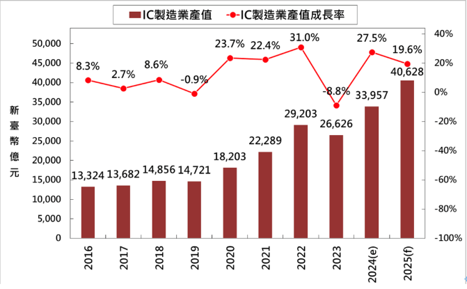 至于,全球半導(dǎo)體產(chǎn)業(yè)的未來走向也受到各個(gè)國家和地區(qū)政策的深遠(yuǎn)影響。美國芯片法案、歐盟芯片法案,及中國臺(tái)灣和日本等產(chǎn)業(yè)發(fā)展計(jì)劃,正在重塑全球半導(dǎo)體供應(yīng)鏈的生態(tài)系。中國臺(tái)灣作為全球半導(dǎo)體制造的核心重鎮(zhèn),將在政策支持和技術(shù)創(chuàng)新下,繼續(xù)扮演關(guān)鍵角色。 2024 年預(yù)估臺(tái)灣IC 產(chǎn)業(yè)產(chǎn)值將達(dá)新臺(tái)幣5 兆3,001 億元,年成長率達(dá)22%。在AI 和高效能運(yùn)算等應(yīng)用需求的推動(dòng)下,展望2025年臺(tái)灣IC產(chǎn)業(yè)產(chǎn)值將達(dá)新臺(tái)幣6 兆元,預(yù)估年成長率為16.5%,持續(xù)推動(dòng)臺(tái)灣IC 產(chǎn)業(yè)邁向新紀(jì)元。