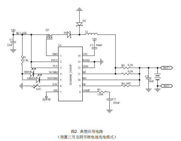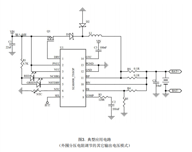 SLM6900 采用TSSOP-14L封裝,外圍應(yīng)用簡單,作為大容量電池的高效充電器。