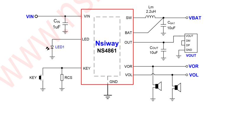 產(chǎn)品名稱:NS4861 單燈指示獨(dú)立耳鋰電池充放電管理 IC