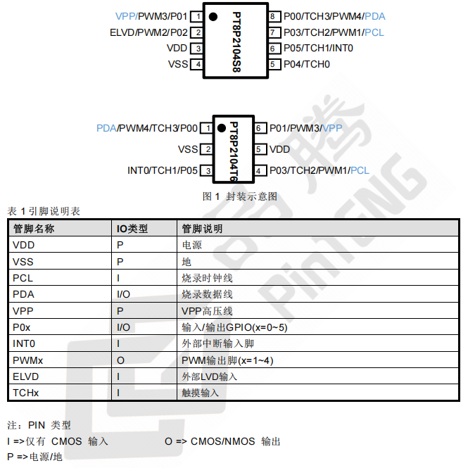 產(chǎn)品名稱:PT8P2104 觸控型 8Bit MCU