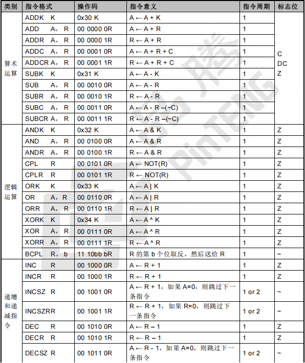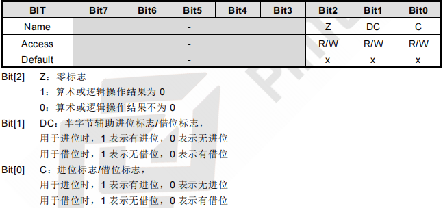 PCL=PC_NEXT[7:0];除此指令外,對(duì) PCL 操作的其他指令不能改變 PC 值)。