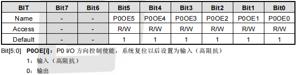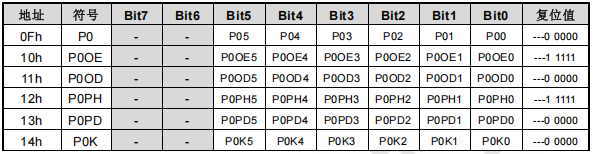 • P0 I/O 方向控制寄存器(P0OE,10h):