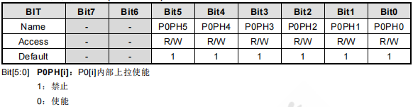 • P0 上拉電阻使能寄存器(P0PH,12h):