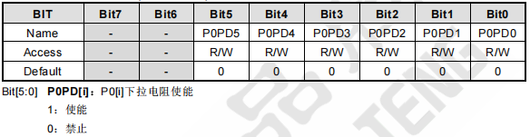 • P0 下拉電阻使能寄存器(P0PD,13h):