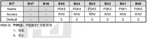 • P0 KEY 中斷使能寄存器(P0K,14h):