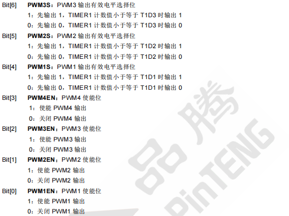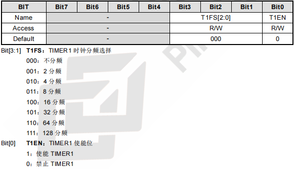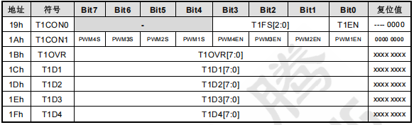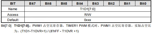 ? TIMER1 PWM1 占空比設(shè)置寄存器(T1D1,1Ch):