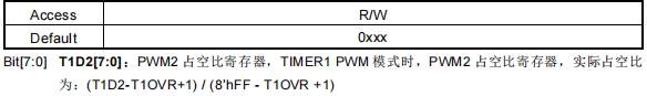 ? TIMER1 PWM2 占空比設(shè)置寄存器(T1D2,1Dh):