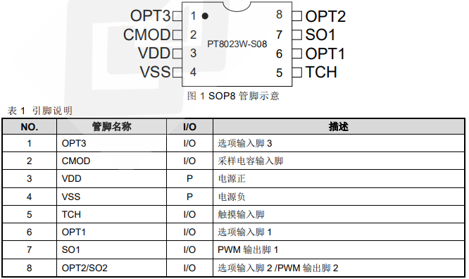 PT8023W 是一款電容式觸摸控制 ASIC,支持單通道觸摸輸入和雙路 PWM 輸出,可引腳配置 6 種功能。PT8023W 主要應(yīng)用于觸摸調(diào)光 LED 燈具,具有低功耗、高抗干擾、寬工作電壓范圍、燈光無(wú)頻閃、外圍器件少的突出優(yōu)勢(shì)。