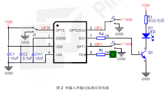 ● TCH 觸摸輸入對(duì)應(yīng) SO1 以及 SO2 兩路燈光控制輸出(PWM)。SO2/OPT2 為輸入輸出
