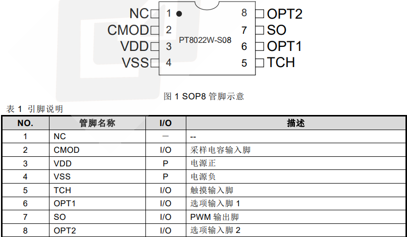 PT8022W 是一款電容式觸摸控制 ASIC,支持單通道觸摸輸入和單路 PWM 輸出,可引腳配置4 種功能。PT8022W 主要應用于觸摸調(diào)光 LED 燈具,具有低功耗、高抗干擾、寬工作電壓范圍、燈光無頻閃、外圍器件少的突出優(yōu)勢。