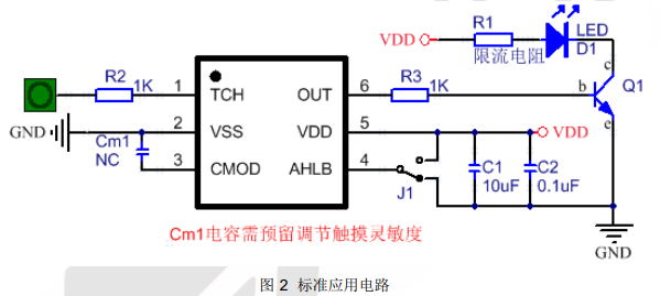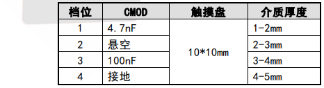 ● 觸摸靈敏度由 CMOD 引腳決定,一共分為 4 檔