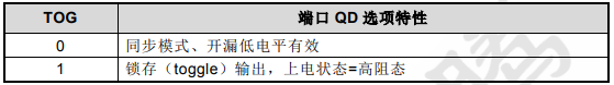● TOG 腳位:選擇同步輸出或鎖存(toggle)輸出。QD 腳(開(kāi)漏 NMOS 輸出)選項(xiàng)特性