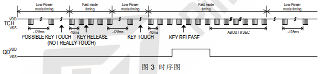 ● 按鍵喚醒后 8S 無(wú)觸摸進(jìn)入低功耗模式