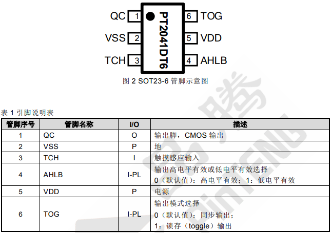 PT2041D 是一款單通道觸摸檢測(cè)芯片。該芯片內(nèi)建穩(wěn)壓電路,提供穩(wěn)定電壓給觸摸感應(yīng)電路使用,同時(shí)內(nèi)部集成高效完善的觸摸檢測(cè)算法,使得芯片具有穩(wěn)定的觸摸檢測(cè)效果。該芯片專為取代傳統(tǒng)按鍵而設(shè)計(jì),具有寬工作電壓與低功耗的特性,可廣泛地滿足不同消費(fèi)類應(yīng)用的需求。