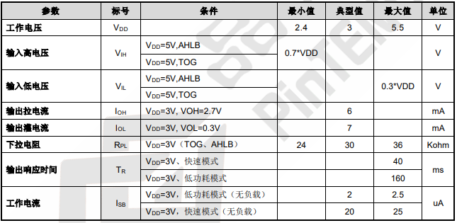 表 3 如無(wú)特殊說(shuō)明 VDD=2.4V~5.5V,Temp=25ºC