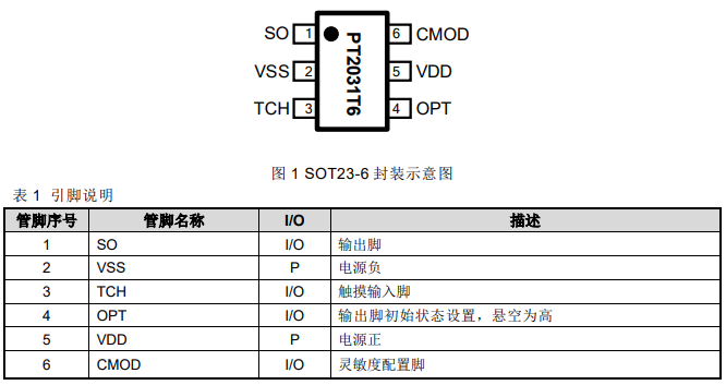 產(chǎn)品名稱:PT2031 單觸控單輸出觸摸 IC