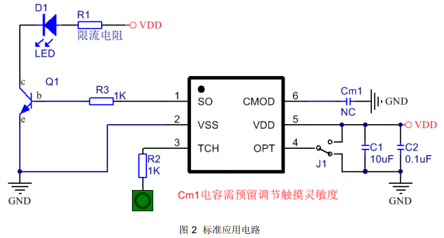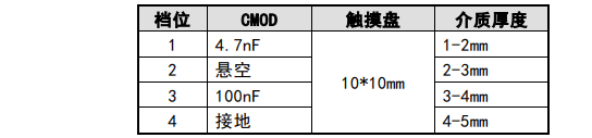 ● 觸摸靈敏度由 CMOD 引腳決定,一共分為 4 檔