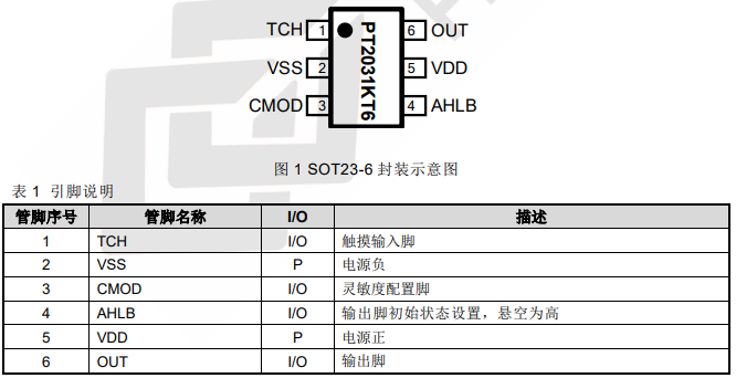 產(chǎn)品名稱:PT2031K 單觸控單輸出觸摸 IC