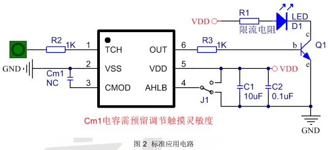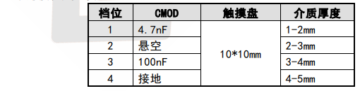 ● 觸摸靈敏度由 CMOD 引腳決定,一共分為 4 檔