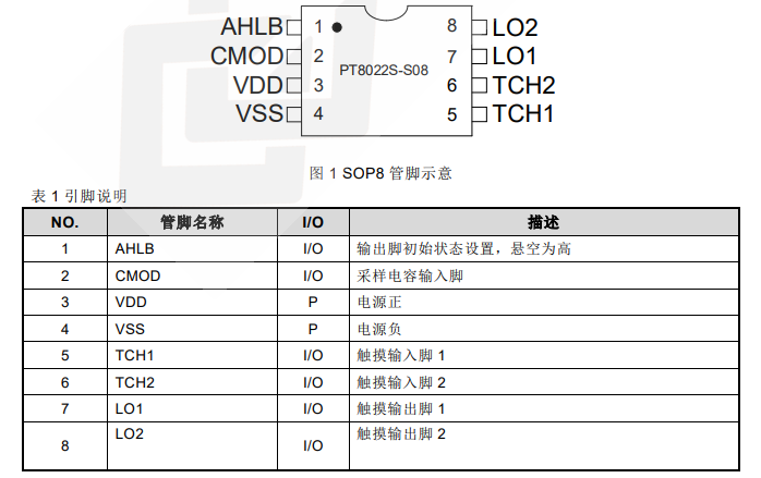 產(chǎn)品名稱:PT8022S 雙觸控雙輸出觸摸 IC
