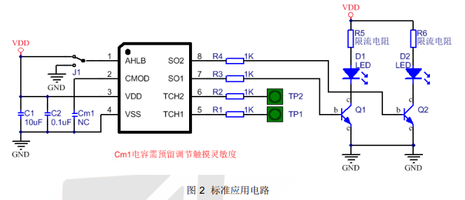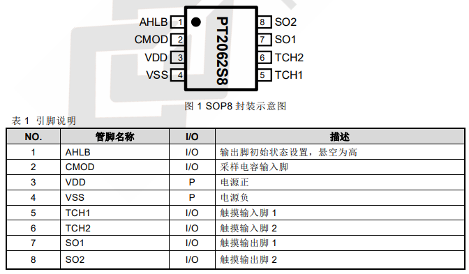 ● TCH1 觸摸輸入對(duì)應(yīng) SO1 邏輯輸出,TCH2 觸摸輸入對(duì)應(yīng) SO2 邏輯輸出。