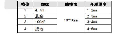 ● 觸摸靈敏度由 CMOD 引腳決定,一共分為 4 檔