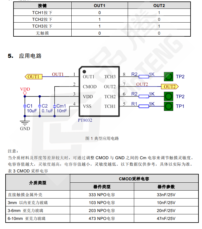 產(chǎn)片介紹:PT8032 是一款電容式觸摸控制 ASIC,支持 3 通道觸摸輸入,2 線 BCD 碼輸出。具有低功耗、高抗干擾、寬工作電壓范圍、高穿透力的突出優(yōu)勢(shì)。