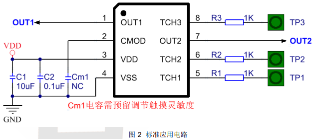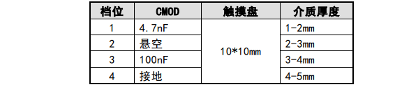 ● 觸摸靈敏度由 CMOD 引腳決定,一共分為 4 檔