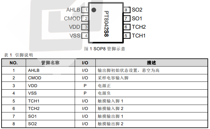 產(chǎn)品名稱:PT8042 雙觸控雙輸出觸摸 IC