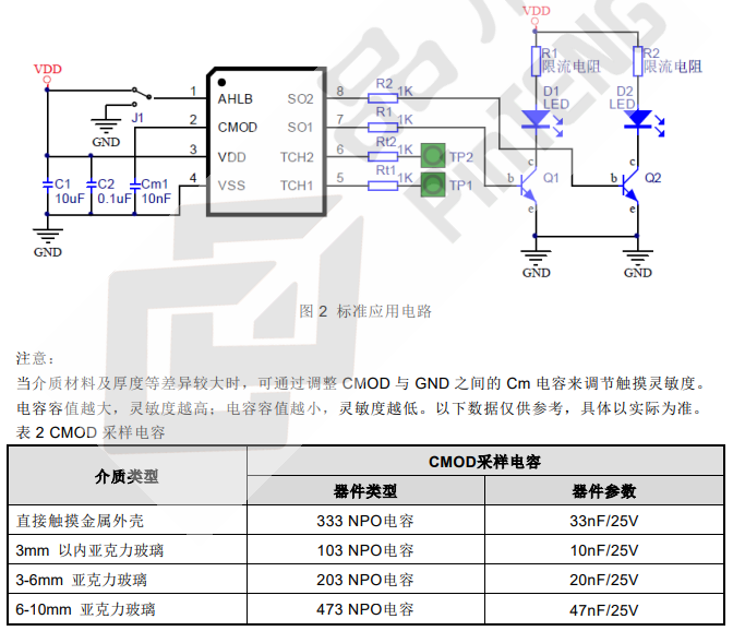 ? TCH1 觸摸輸入對應(yīng) SO1 邏輯輸出,TCH2 觸摸輸入對應(yīng) SO2 邏輯輸出。