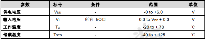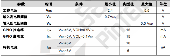 表 4 直流特性(如無特殊說明 VDD = 2.4V~5.5V,Temp = 25ºC)