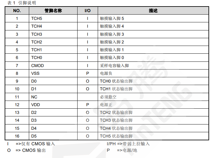 ● 芯片采用一對一直接輸出,未按鍵時為高電平輸出,按鍵為低電平輸出
