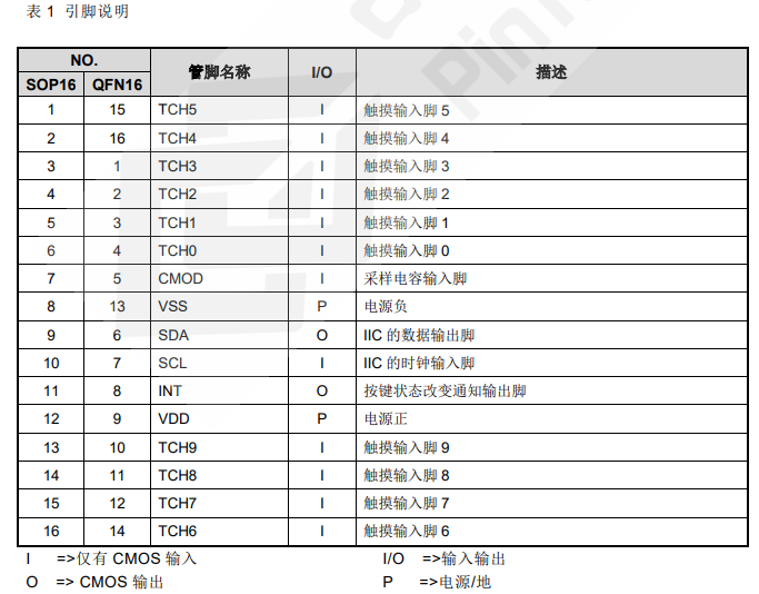 平;有通道按鍵時,INT 輸出低電平
