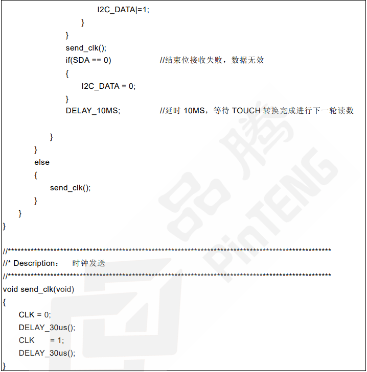 1. 在不讀取觸摸 IC 的數(shù)據(jù)時,保持 SCL 和 SDA 的狀態(tài)為高電平狀態(tài)或高阻狀態(tài)。