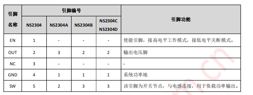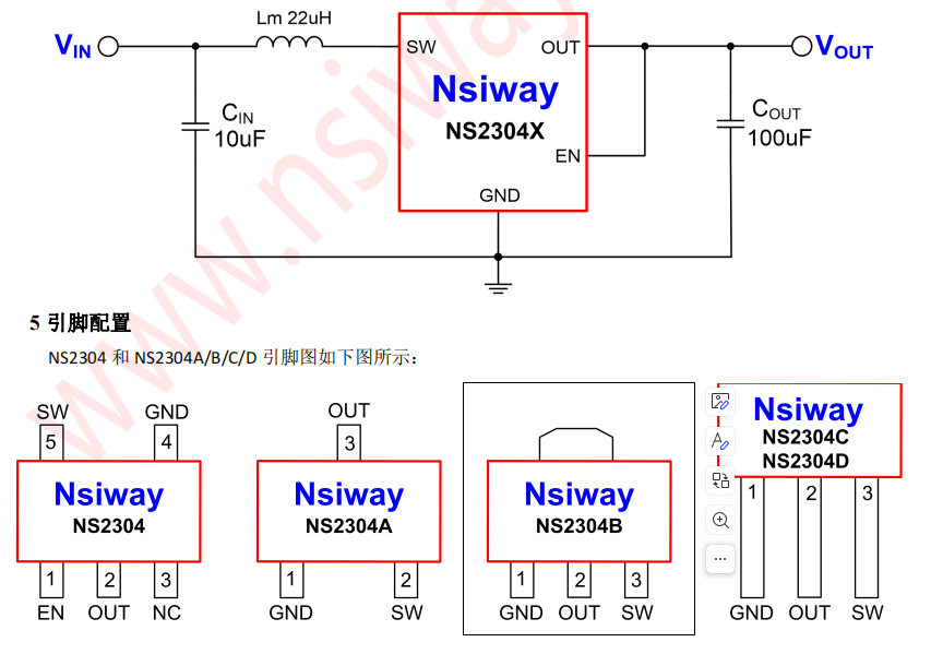 NS2304X 系列輸出電壓有 1.8V-5V 的規(guī)格可擇。