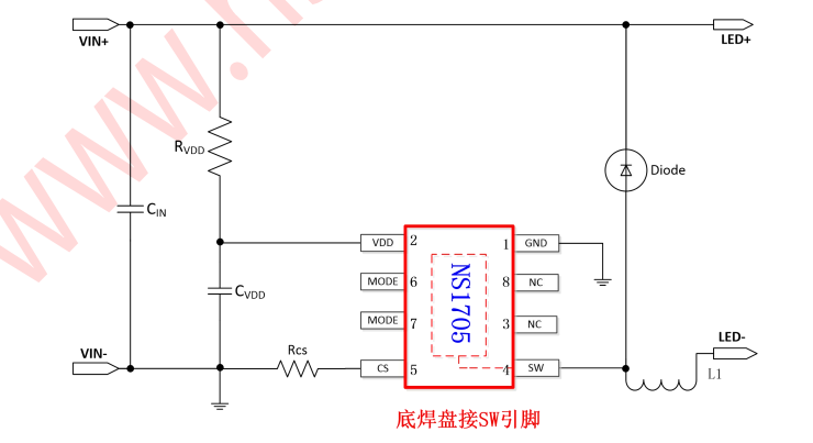 產(chǎn)品名稱:NS1705 內(nèi)置 MOS 管開關降壓型 LED 恒流驅(qū)動器