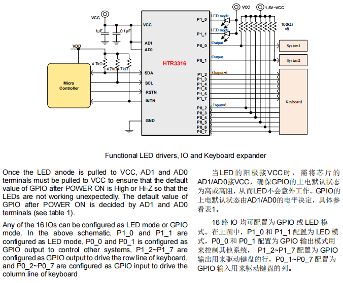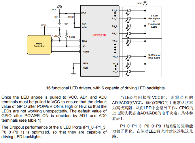 產(chǎn)品名稱(chēng):HTR3316 16路LED驅(qū)動(dòng)器和GPIO控制器