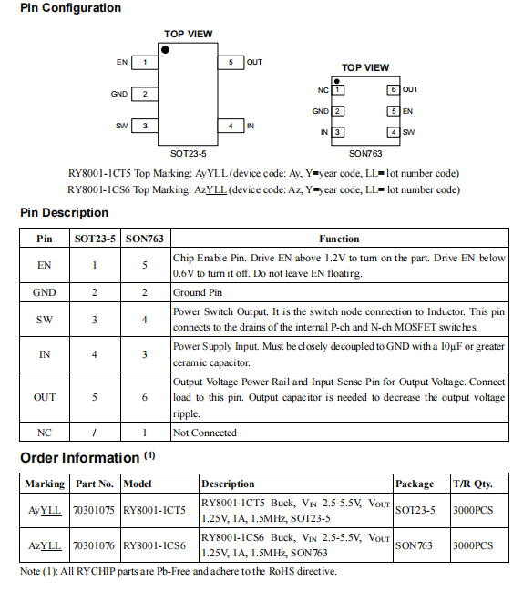 The RY8001 is a high-efficiency monolithic synchronous buck regulator using a constant frequency, current mode