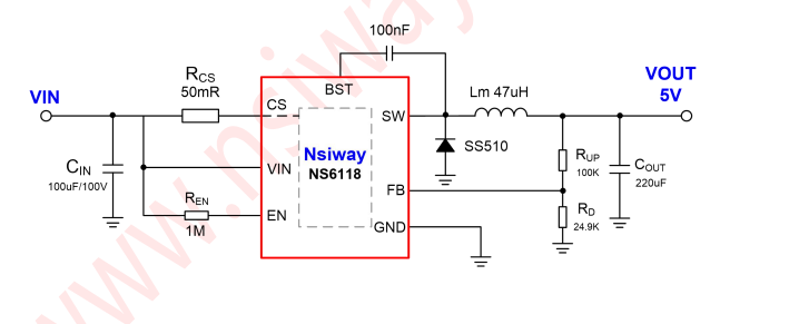 產(chǎn)品名稱:NS6118 100V 輸入 2A 輸出異步降壓穩(wěn)壓器